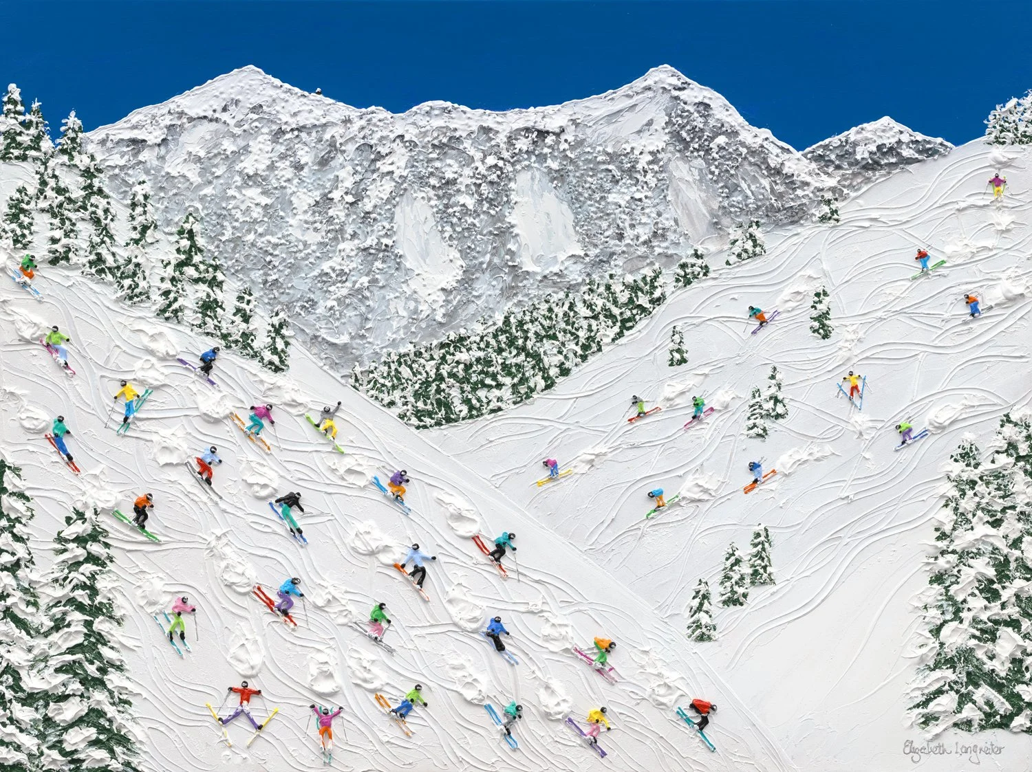 Elizabeth Langreiter is a Sydney-based artist renowned for her vibrant mixed-media aerial paintings that spark joy and nostalgia. Drawing inspiration from her Australian childhood, her unique works feature playful 3D characters and intricate details that captivate collectors worldwide.